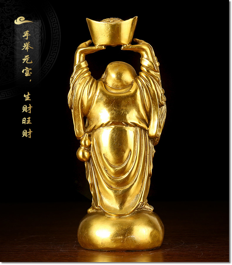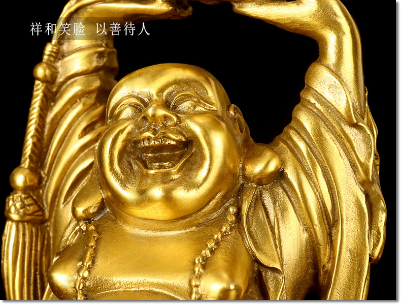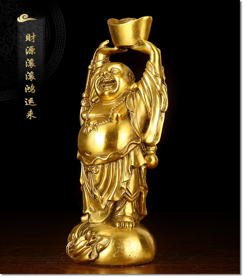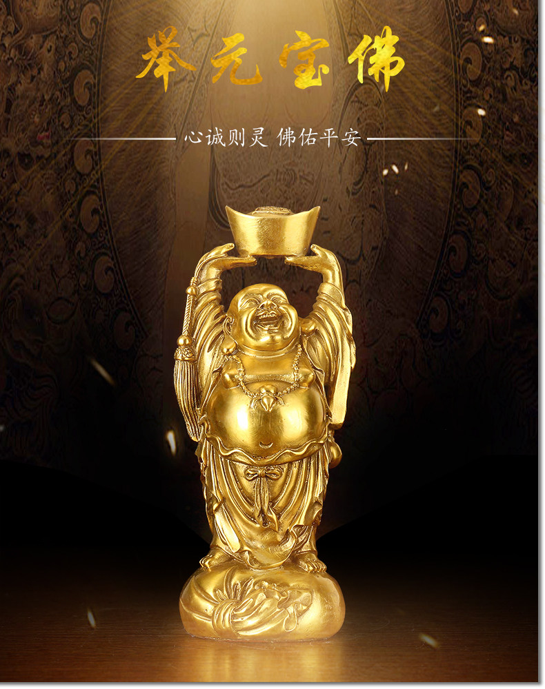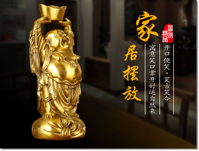 铜弥勒佛像纯铜举元宝大肚笑佛摆件家居客厅供奉开光风水办公用品