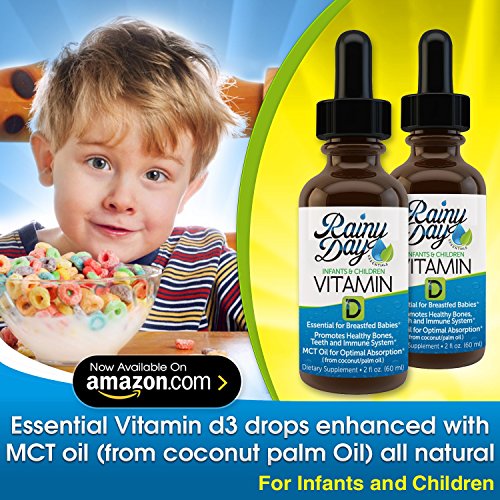 -. Feature : ★THE SUNSHINE VITAMIN - Rainy Day Essentials brings you a perfectly potent Liquid Vitamin D3 for Infants & Children. One Drop is equal to 400 IU which is the recommended dose for your little one. Served in liquid form for premium absorption, it ensures your child gets the correct amount of Vitamin D during those most crucial developmental years! / ★ TRUE PURITY - Unlike other kids vitamin D products, our Vitamin D3 is truly a natural choice for your child's diet. Each drop contains only Vitamin D3 (Cholecalciferol) and MCT (Medium-chain triglyceride) Oil based in all-natural coconut and palm oils. No additives or unnecessary fillers. Our purity is unmatched, tasteless, and odorless. / ★DEFICIENCY NO MORE! - It's surP.R.Isingly common for children to suffer from a vitamin D deficiency. Lacking this important part of the health matrix can affect proper bone growth, development, and can even cause immune deficiencies as well. Take heart and peace of mind that with us, your little one is receiving the best in developmental support! / ★ BETTER VALUE - Don't waste time with other brands that leave you with mere months of liquid. We offer a FULL YEAR of powerful vitamin D3 for your little one. Best of all, it's made in a GMP certified U.S. factory to ensure purity and safety. We offer only the best for you and your child. / ★ RESTORED - We are proud of this outstanding product. It's proven to help your infant or child stay healthy, energized, and growing strong! We want you to buy with peace of mind. Know that with us, you're covered for a full 90 days! If our product just doesn't meet your expectations, there's no hard feelings. Just send it back our way for a no questions asked refund of your purchase!