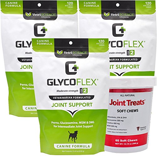 -. Feature : 3 PACK Glyco Flex II with Free 60 count Joint Treats. / These delicious, chicken flavored, soft chews are recommended to provide comprehensive support for joint function and connective tissue health in dogs with moderate joint dysfunction / GLYCO-FLEX II represents Stage II of our comprehensive stage of life program for joint support / It's also recommended by veterinarians for adult and maturing dogs, sporting and working breeds as well as a follow-up to orthopedic surgery