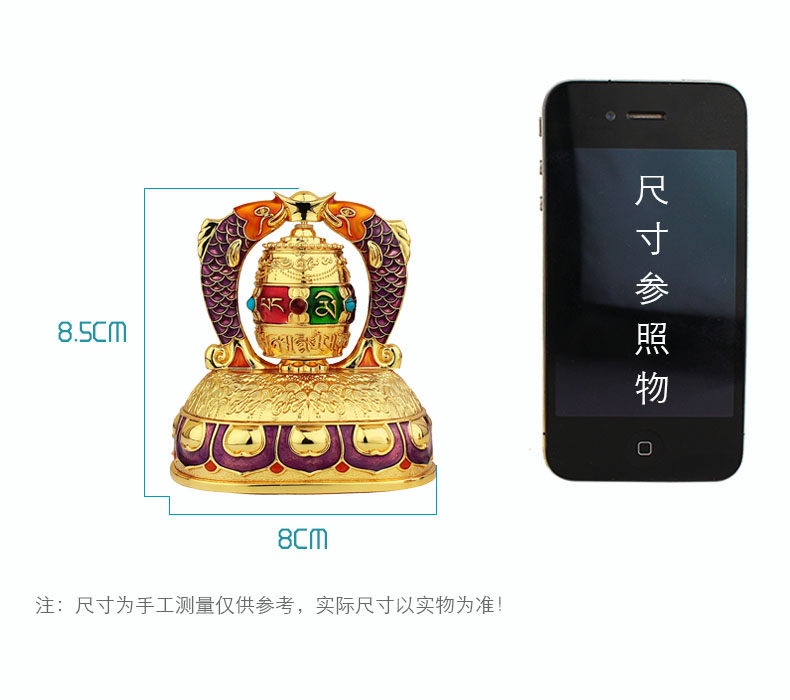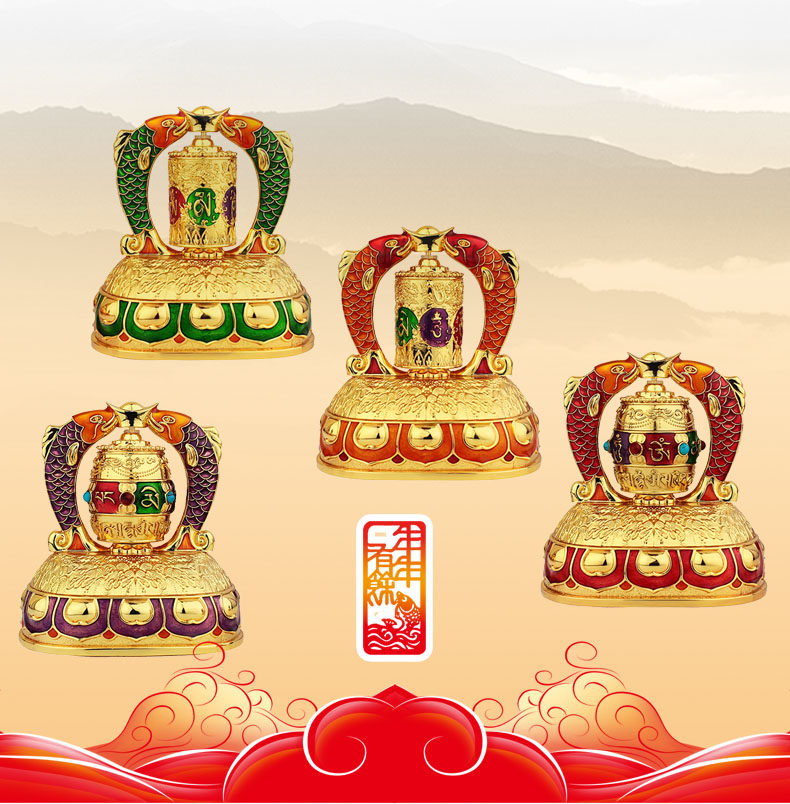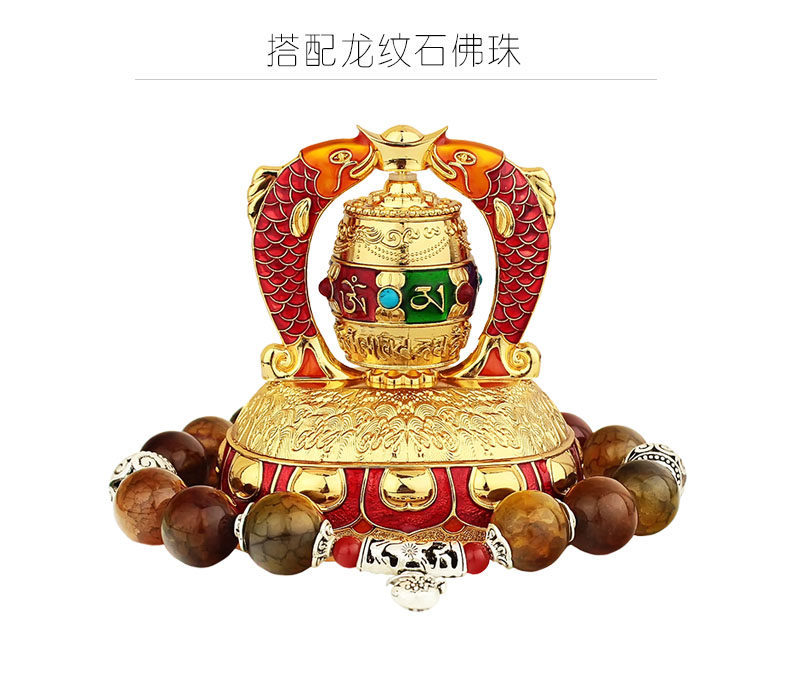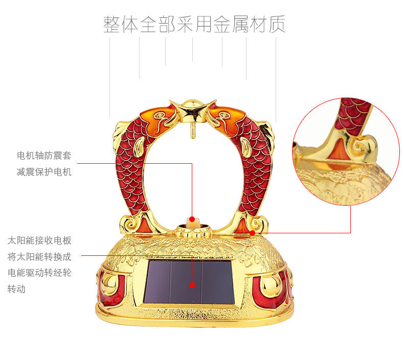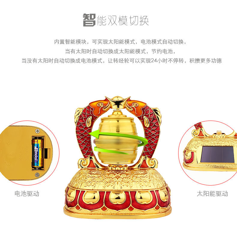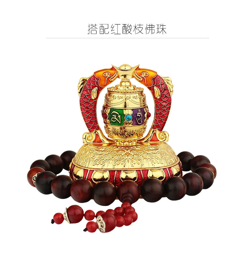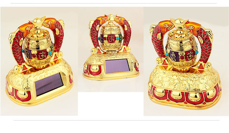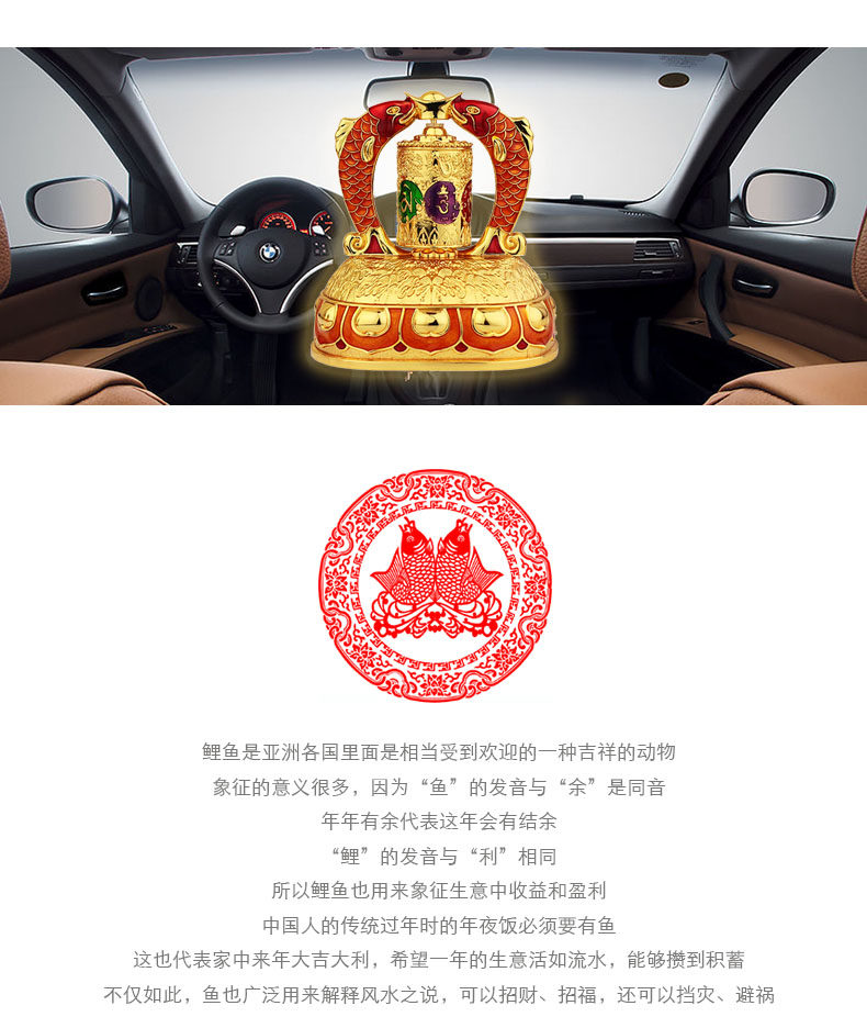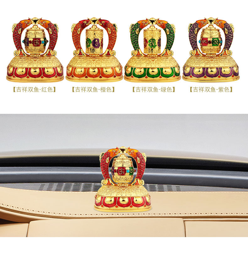 红韵太阳能转经轮汽车摆件彩绘吉祥双鱼转经筒车载内饰用品保平安