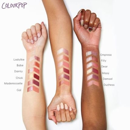 -. Feature : COLOURPOP 大人気 アイシャドウパレット / Ladylike: metallic soft ivory Babe: satin light peachy pink Dainty: metallic pinky taupe / Chick: metallic subtle gold Mademoiselle: metallic rose gold Gal: metallic red with copper duochrome / Empress: metallic mid-tone pink plum Filly: metallic rusty orange Dear: matte warm rose / Missy: matte deep burgundy Damsel: matte smokey violet Duchess: matte dusty coral