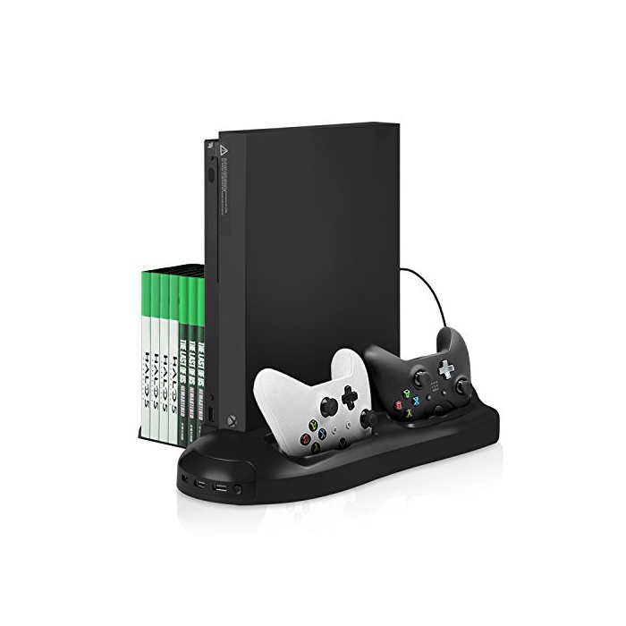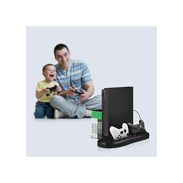 Xbox One X 스탠드-Younik Xbox One X 세로 두어 스탠드 냉각 쿨러 팬 콘트롤러 2대 충전 USB허브 3포토 디스크 수납 (7매) 【xbox one x본체