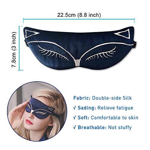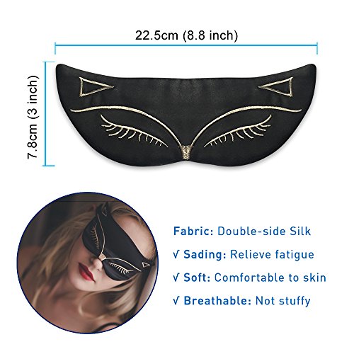 -. Feature : It's time to abandon the ordinary monotonous eyeshade, the fashion design of fox pattern make your sleep feel more different, good looking and sexy. / The fabric of real silk have a perfect touch which can intimately cover your eye skin, never mind the allergy. Smooth, soft, and supper light, it's very very comfortable to wear. / Multi layer fabric with excellent shading, no light leakage. / One size, the elastic strap can be adjustable, suitable for all adults. / This mask gives you a good sleep environment without light, and help to fall asleep faster.