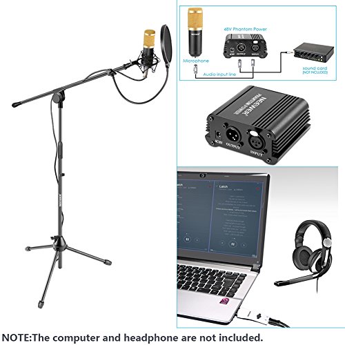 -. Title : Neewer NW-800 Condenser Microphone Kit: NW-800 Microphone (Gold),Microphone Floor Stand with Boom,48V Phantom Power Supply,Shock Mount, Pop Filter and USB Sound Card Adapter for Studio Voice Recording