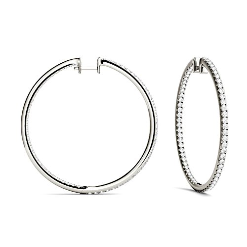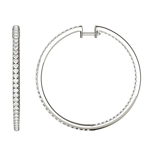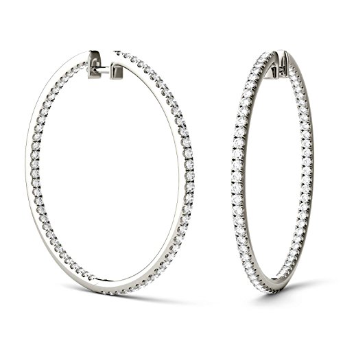 -. Feature : These beautiful Forever Classic hoop earrings showcase 1.5mm round brilliant cut moissanite gemstones. / Beautifully crafted in rhodium plated white gold. / The pair of earrings has a total Diamond Equivalent Weight (DEW) of 1.98cttw (Actual Weight 1.41cttw). / Charles & Colvard Forever Classic moissanite takes your breath away with its dazzling sparkle. This incredible gem has the faintest hints of color (J - K color range), just enough to lend definition to its facets. Forever Classic is the perfect companion gem for a wide variety of jewelry styles. / Moissanite created by Charles & Colvard is among the hardest minerals on the planet, more durable than sapphire, ruby, or emerald and has more brilliance than a diamond. It scores 9.25 on the Mohs scale for hardness.