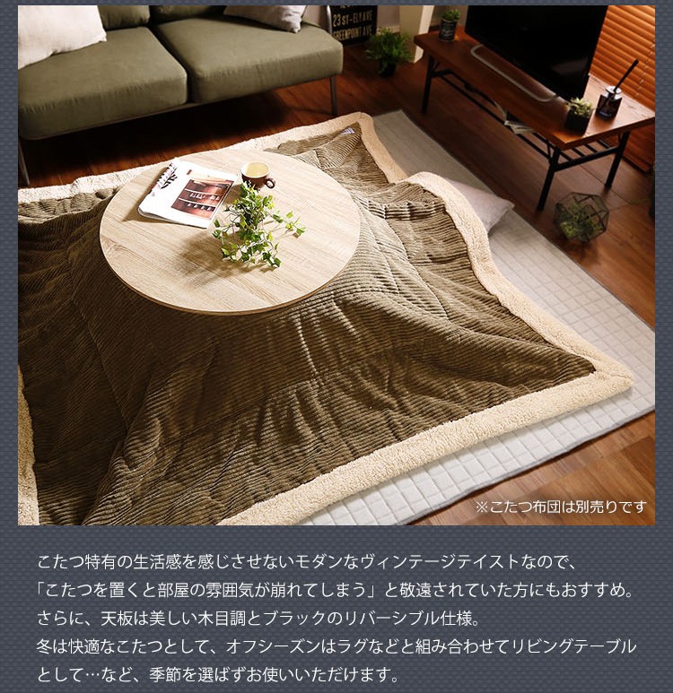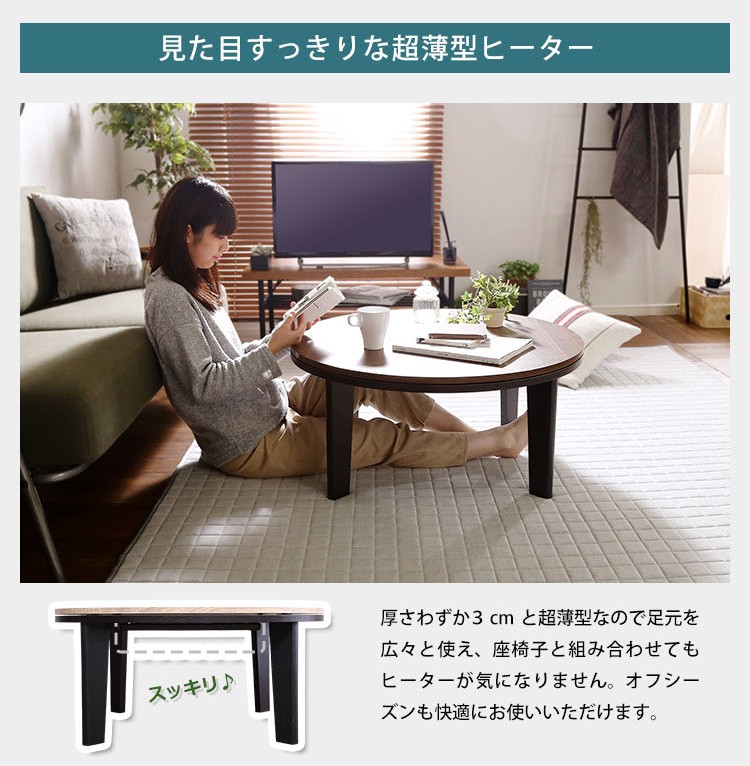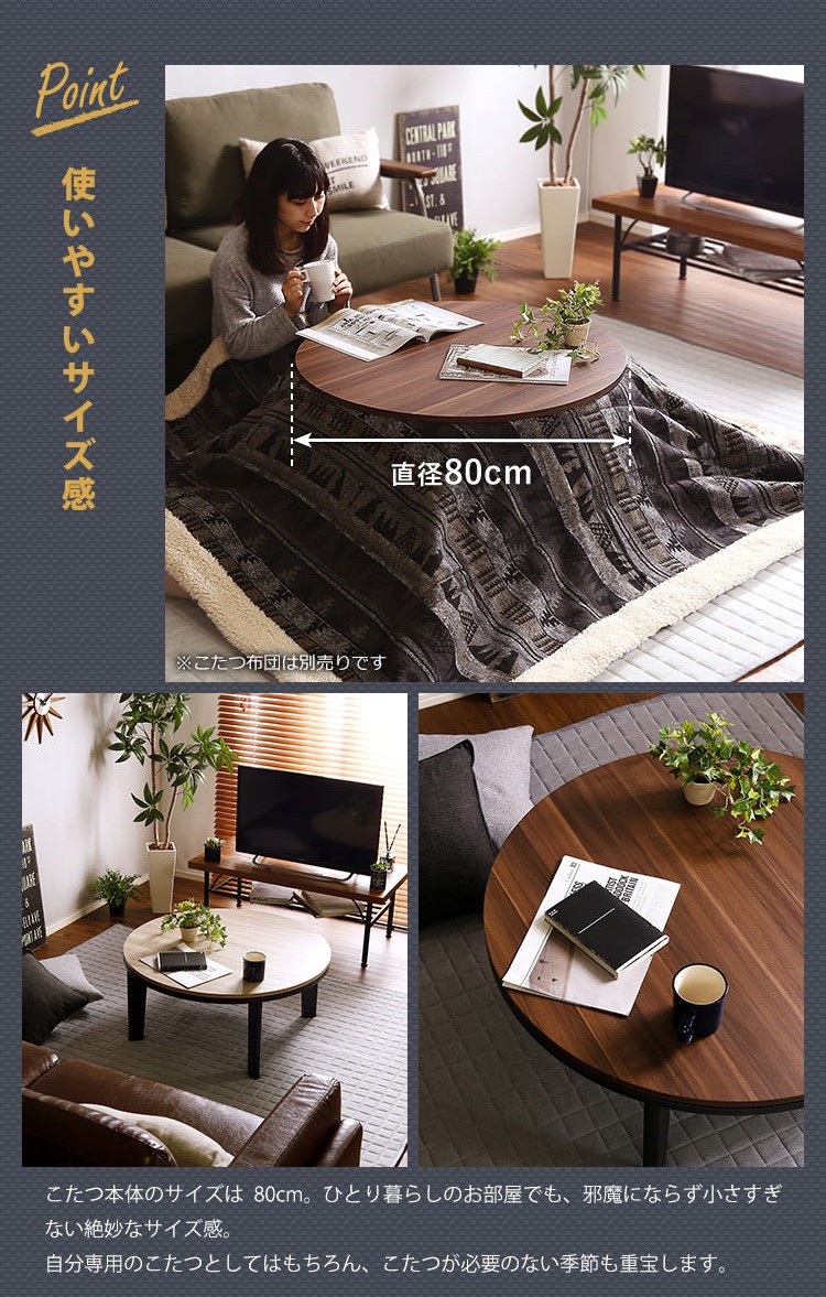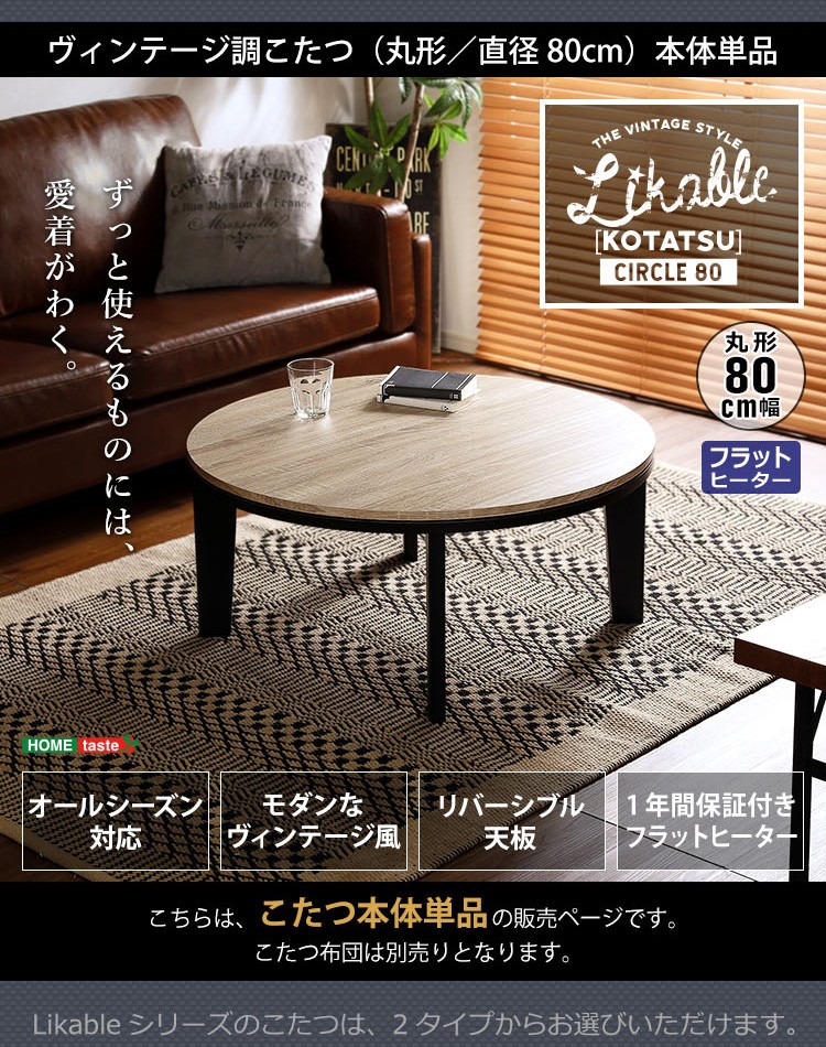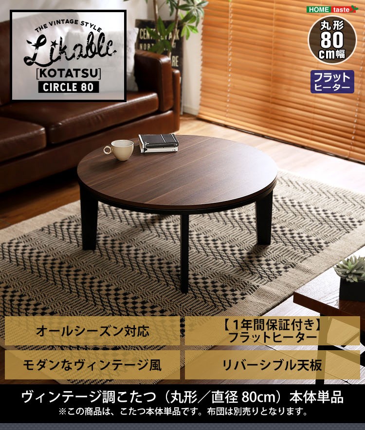 カジュアルこたつ ヴィンテージタイプ フラットヒーター付 80cm幅 丸型 単品【Likable -ライカブル-】シリーズ [CIRCLE 80]