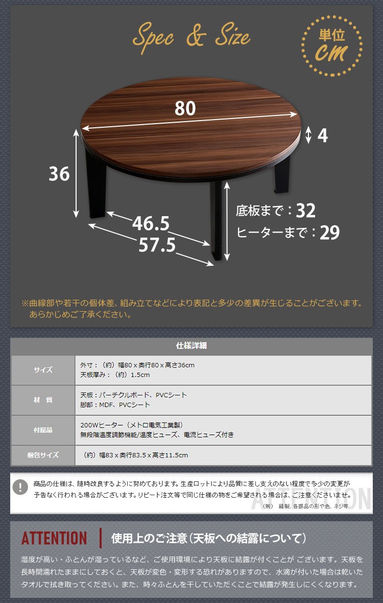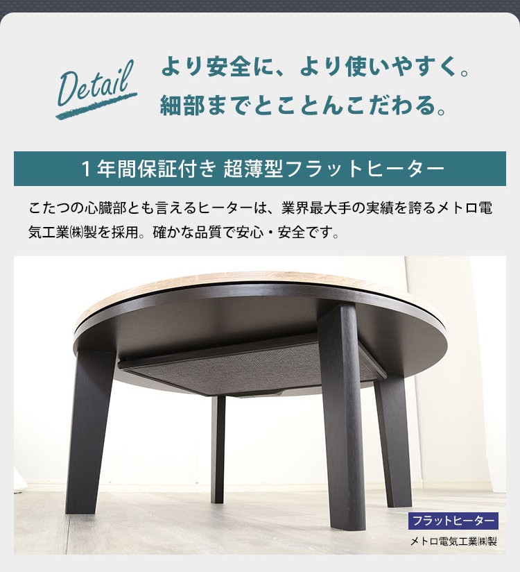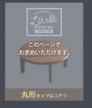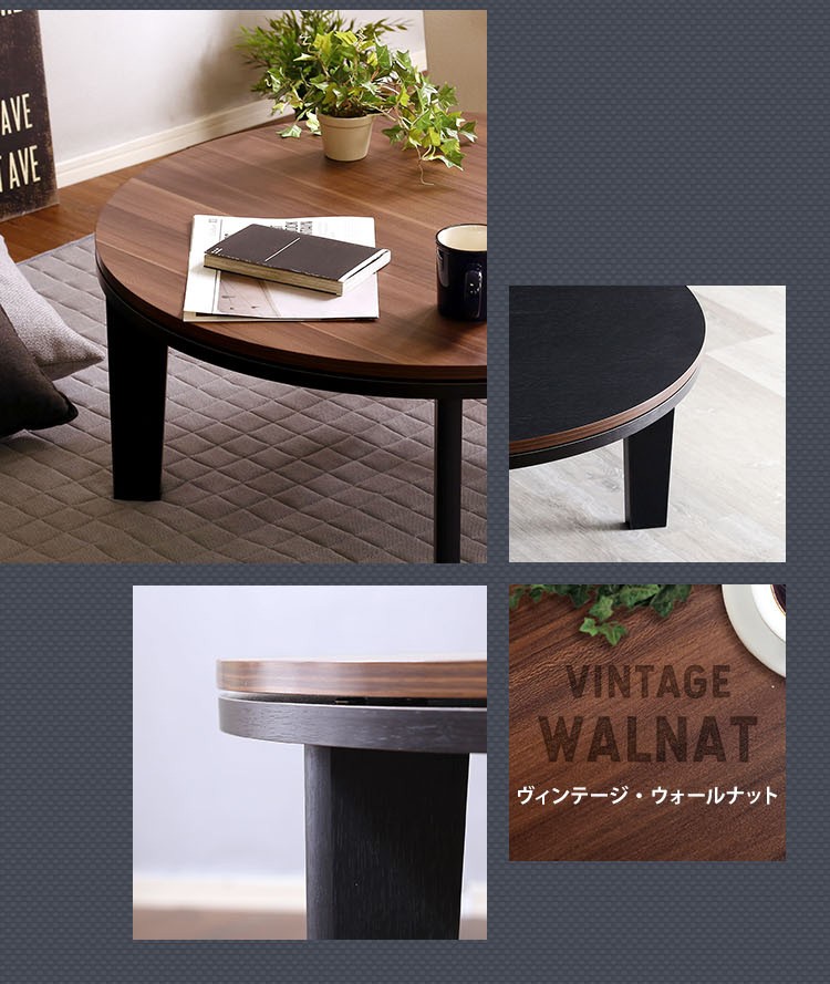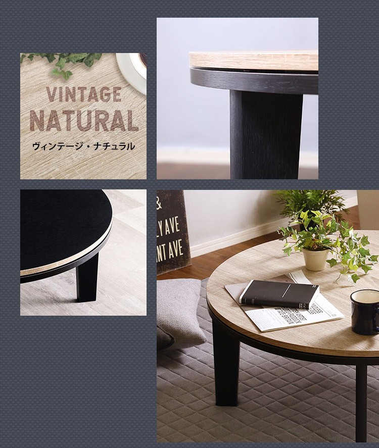 カジュアルこたつ ヴィンテージタイプ フラットヒーター付 80cm幅 丸型 単品【Likable -ライカブル-】シリーズ [CIRCLE 80]