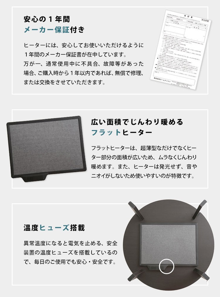 ・無段階温度調節機能、温度ヒューズ付