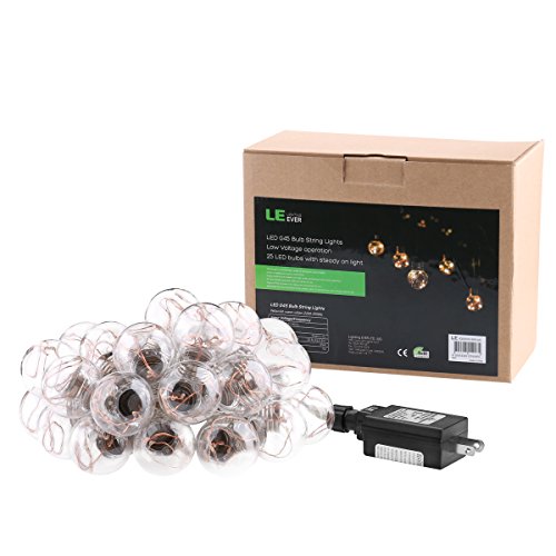 LE G45 25 LEDs Globe String Light Bulbs, 20ft Water Resistant Copper Wire Fairy Patio Lights 2200K for Backyard Patio Garden Tents Market Cafe Gazebo Porch Party Decor with Power Adaptor