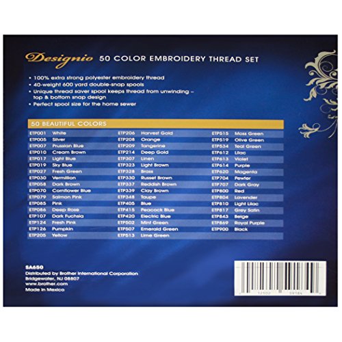 Designio by Brother SA650 50-Piece High-Sheen, Polyester Embroidery Thread Set