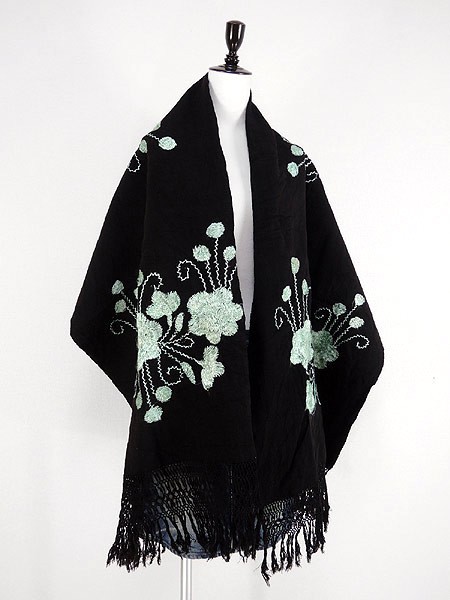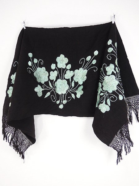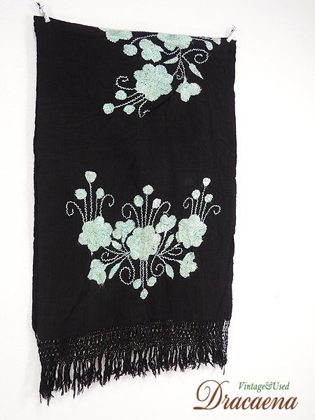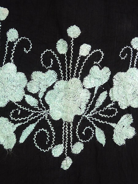 黒地に水色の花柄刺繍。