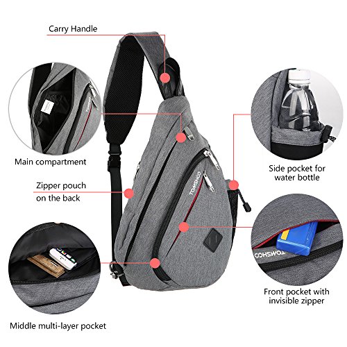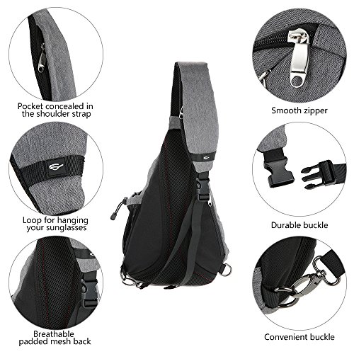 -. Binding : Misc. -. Brand : HOO -. Feature : FUNCTIONAL: More compartments and pockets keeping your items well organized. Main compartment is large enough to carry what you need. Middle multi-layer pocket is designed for well organizing your items such as purse and cellphone. Front pocket with invisible zipper is great for quick access to frequently-used items such as keys. And it is designed with a side pocket for water bottle. / CONSIDERATE: With a pocket concealed in the shoulder strap and the back, and with loop on the shoulder strap for hanging your sunglasses. / COMFORTABLE: Breathable padded mesh back for optimal comfort. / DURABLE: High-quality nylon and polyester lining, scratch-resistant, most long-lasting ever. -. Label : HOO -. Manufacturer : HOO -. ProductGroup : Sports -. ProductTypeName : SPORTING_GOODS -. Publisher : HOO -. Studio : HOO -. Title : HOO Shoulder Pack Sling Chest CrossBody Bag Sports Leisure Men Women