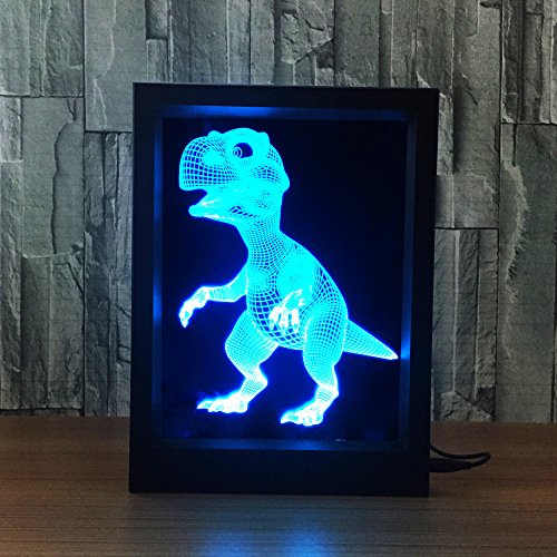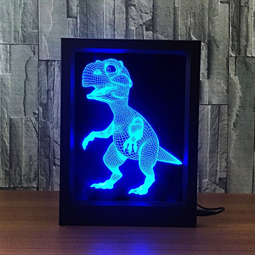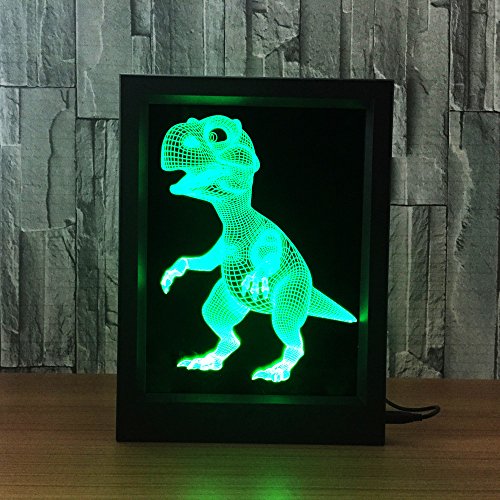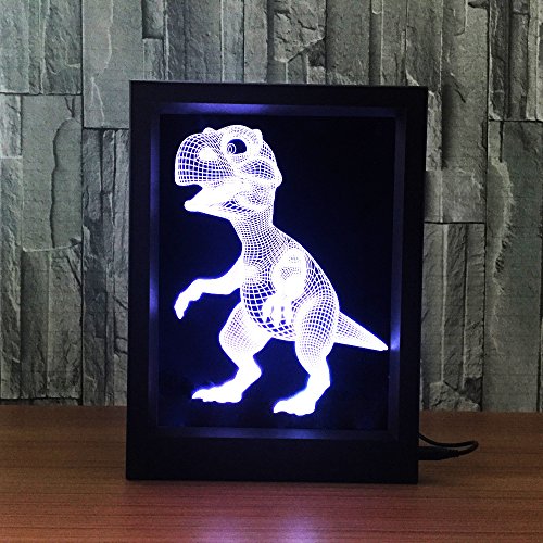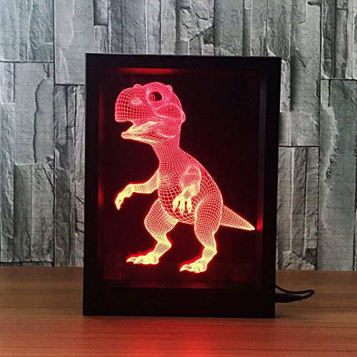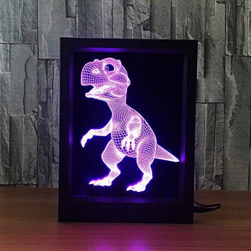 DoBeShop 3D Illusion Photo Frame Sleeping Night Light Remote Control Multi Colors USB Desk Lamp (Baby Dinosaur)