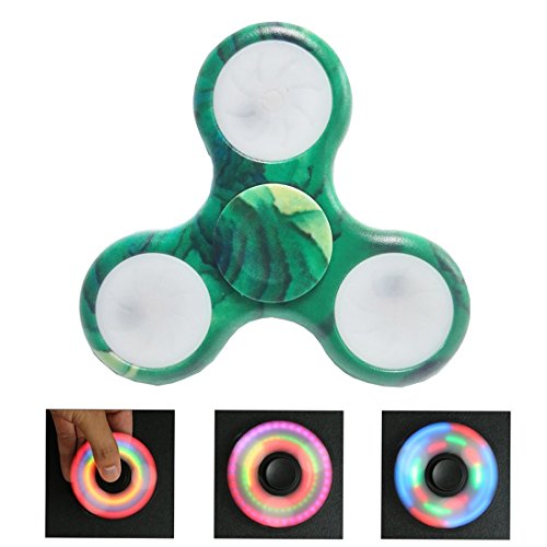 - 6-Modes: Fast Flash Mode-Slow Flash Mode-No Flash Mode. The light glow with 3 colors(red, blue and green)while you spin it. LED Fidget Spinner has button on every shinning part, you can press to change modes and the battery can be replaced when no lighting any more.