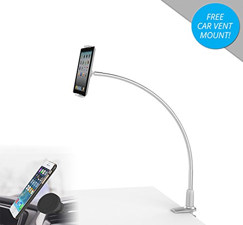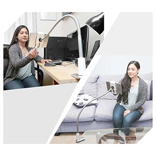 ✓ HANDS-FREE DESIGN: Free up your hands while reading your favorite kindle book on your iPad, Facetime with friends and family, or even watching movie on cell phone. This strong gooseneck tablet mount and iPad holder is perfect to put on bedside, desk, treadmill or kitchen.