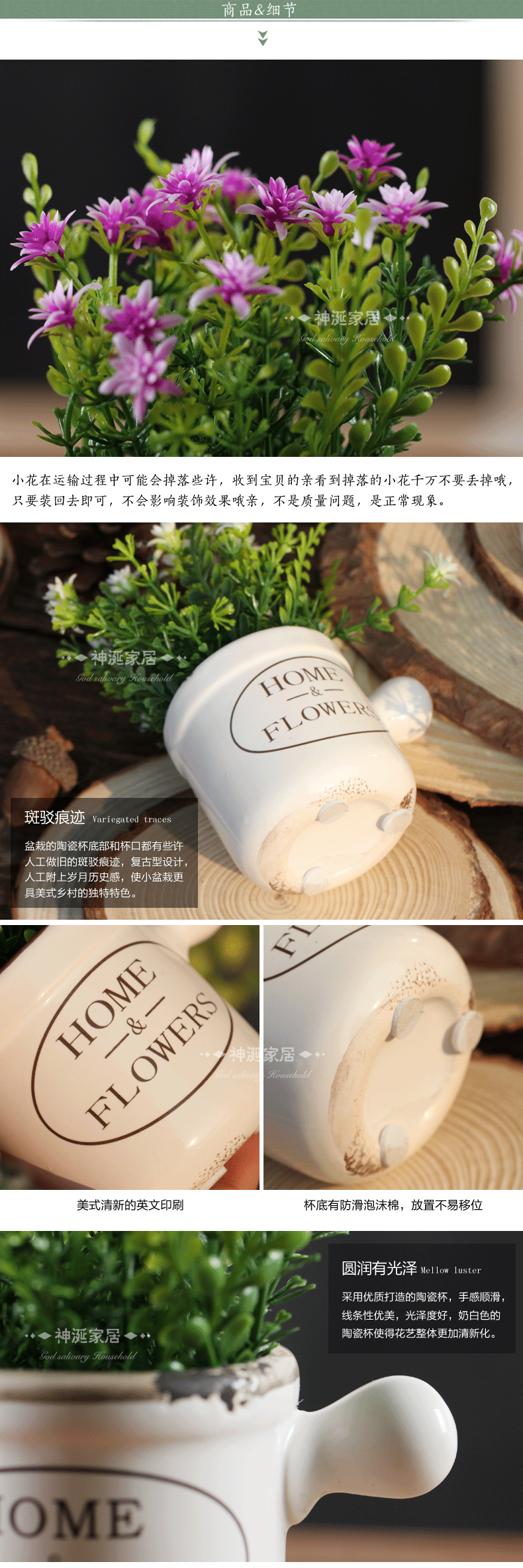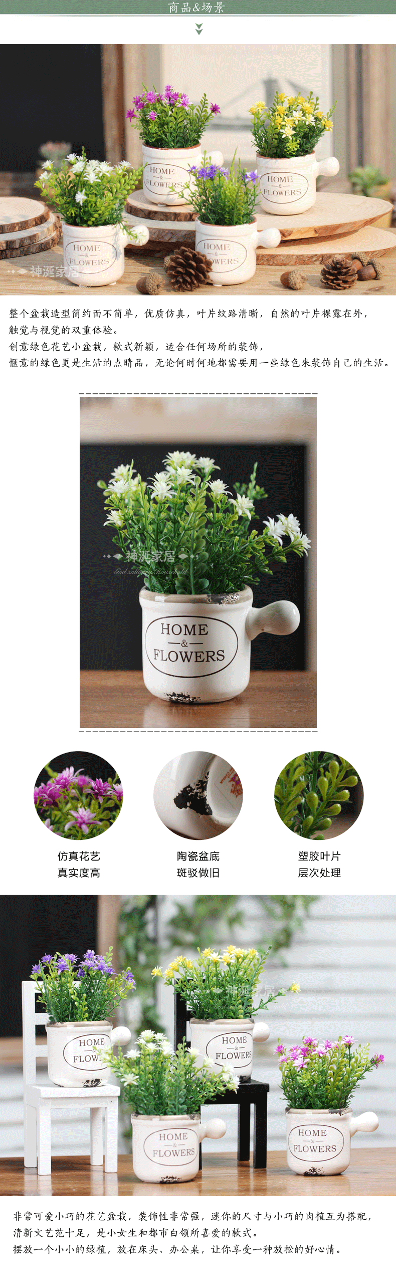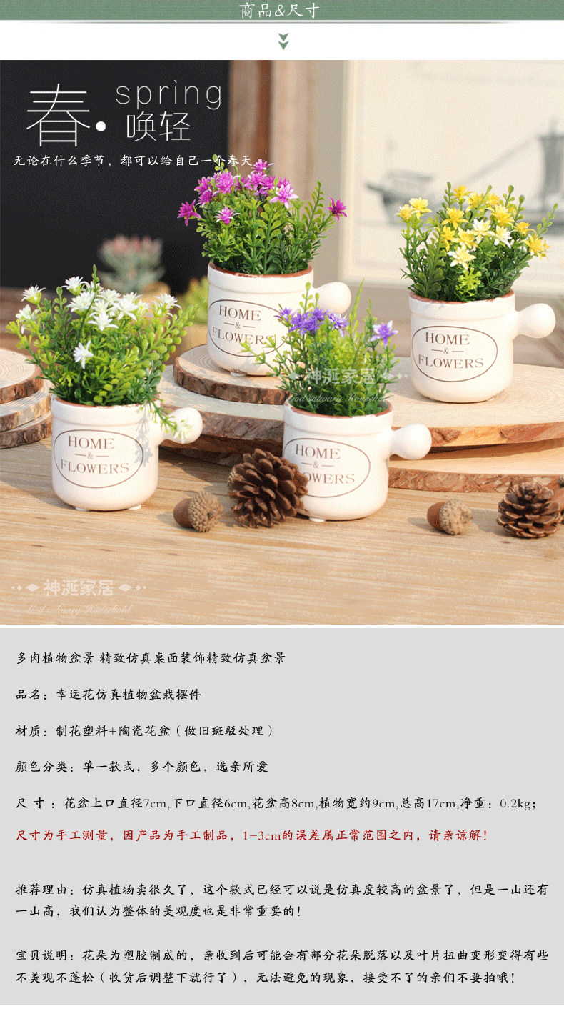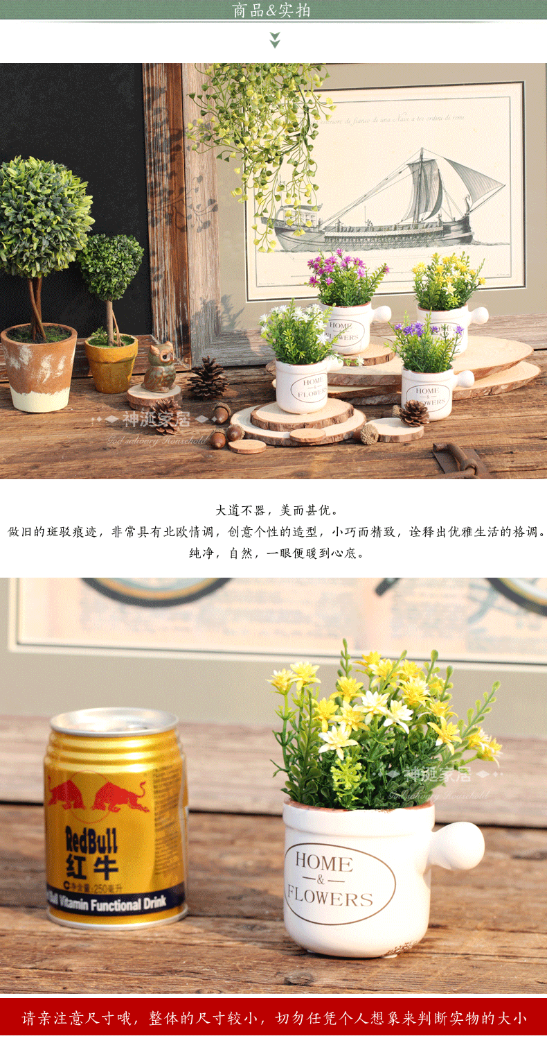 田园乡村塑料假花仿真花艺套装陶瓷盆栽客厅家居绢花装饰花摆件设