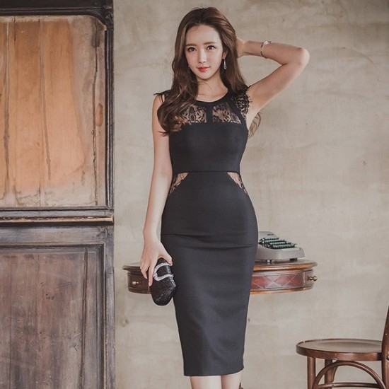 セクシーな雰囲気漂う、ひざ丈タイトワンピース。