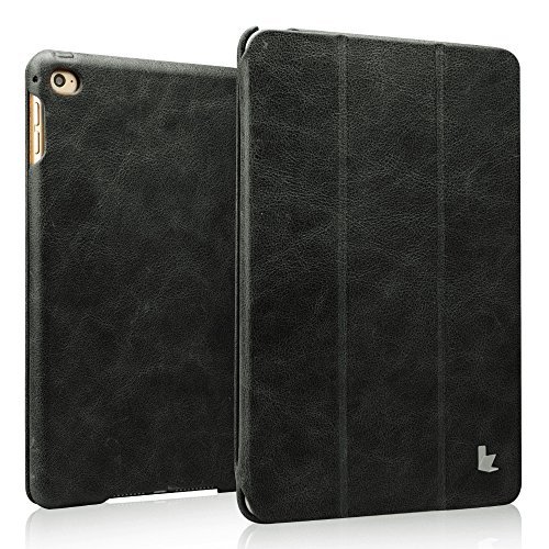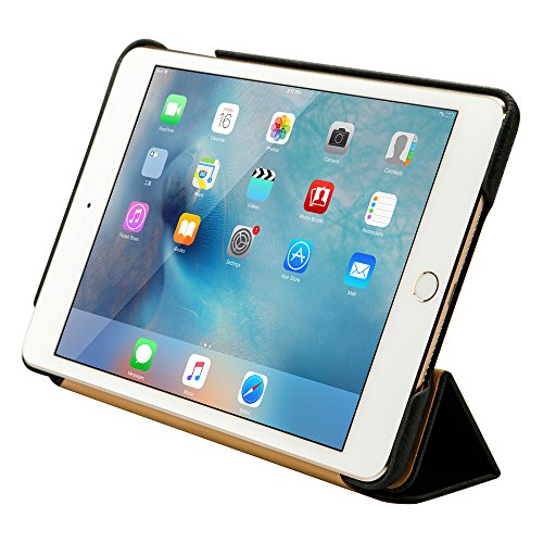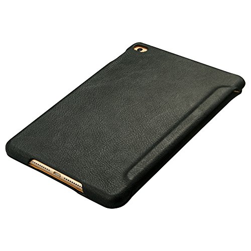 Jisoncase 100% Handmade iPad mini 4 Genuine Leather Case Magnetic Smart Cover with Auto-Sleep/Wake up Function Stand Feature for Apple 2015 New Release iPad Mini 4, Black JS-IM4-01A10