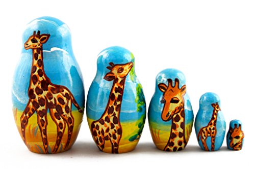 -. Title : Matryoshka Matrioska Babuska Russian Nesting Wooden Doll Family of Giraffes Matreshka Babooshka 5 Pc Stacking Hand Painting Beautiful Nested Matriosjka Matrioska Matreshka Matrjoska Matroeska
