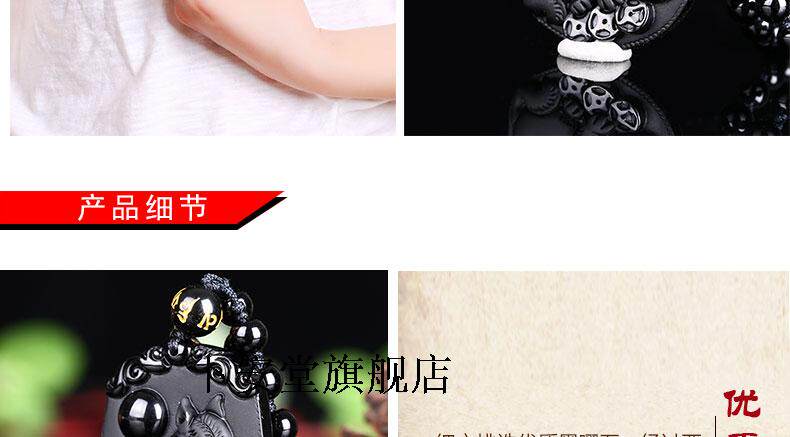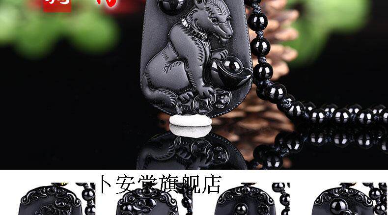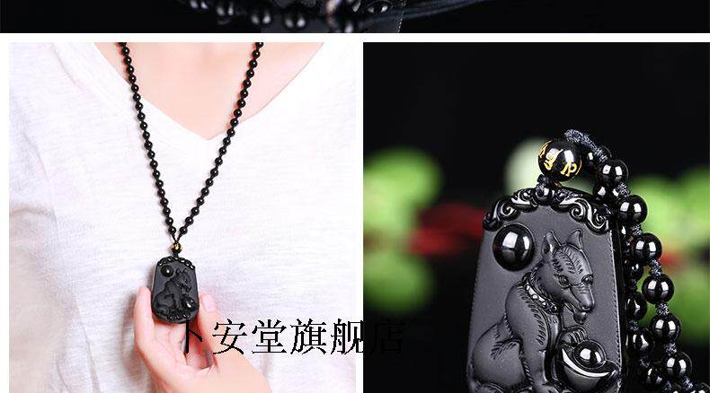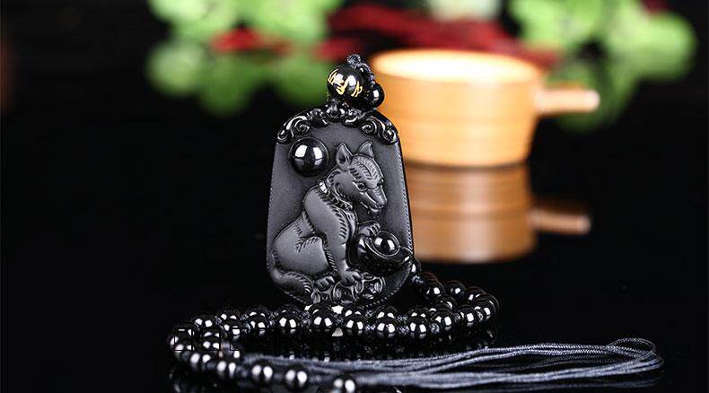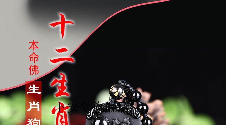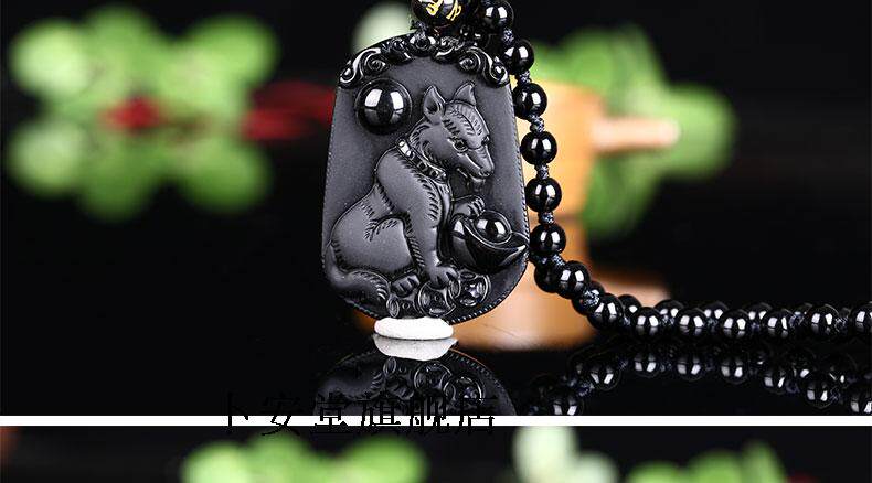 开光属狗人吉祥物吊坠财福双犬黑曜石项坠饰品男女款