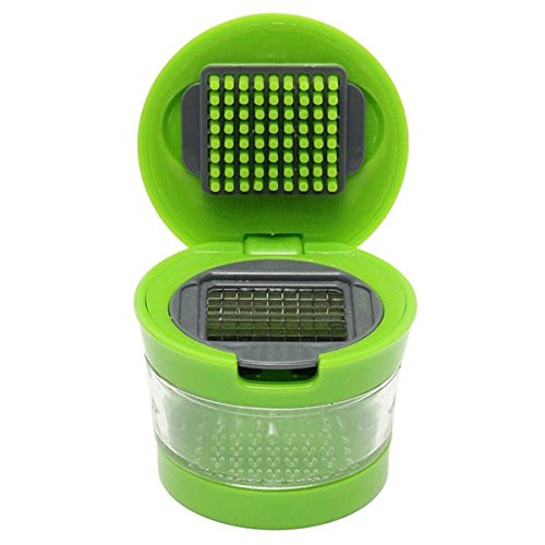 Product DescriptionSpecification : Material : Plastic Stainless Steel Main Color : Green Size : about 7.3cm*6.4cm*6.5cm Package Includes : 1 x?Multi-function Garlic Press Slicer0