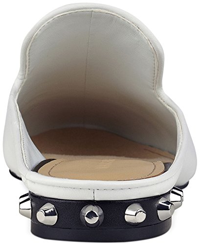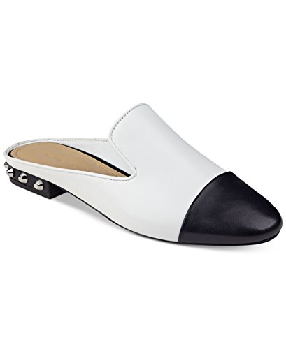 Product Description A capped toe and studded heel bring eye-catching interest to the understated notched silhouette of Marc Fisher's Analise mule flats. 0
