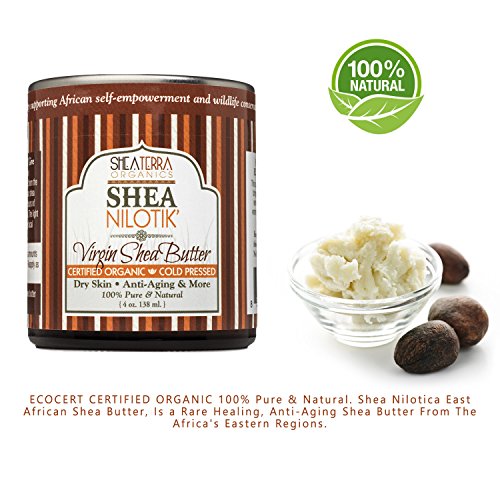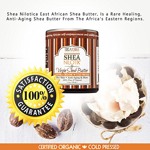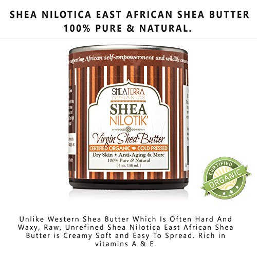 100% Pure & Natural. Shea Nilotica East African Shea Butter, is a rare healing, anti-aging shea butter from the Africa's eastern regions. Unlike western shea butter which is often hard and waxy, raw, unrefined Shea Nilotica East African Shea Butter is creamy soft and easy to spread. Rich in vitamins A & E, this anti-aging butter is perfect around the eyes, on nails, cuticles, hair and more.