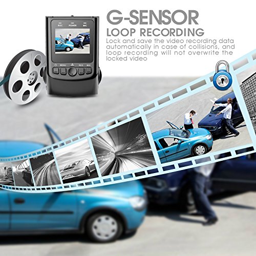 SUPER COMPRENSIVE FUNCTION: Broad 170° field of view, built-in G-sensor, capable of saving and locking the video recording data automatically in case of collisions; Loop recording, automatic seamless video recording in loop to use the storage efficiently, with the earliest unlocked video clips being overwritten
