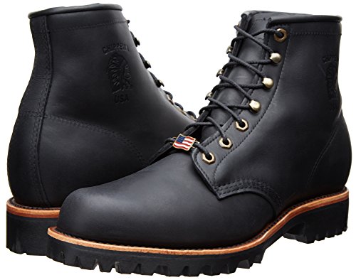 -. Feature : Plain-toe boot in leather featuring lug sole and reinforced stitching / Eyelet/speed hardware / Flag ornament at laces