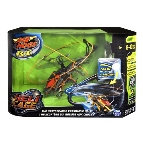 - Feature : The Air Hogs Heli Cage is made for new pilots with a crash preventative protective ring shield system / 4-Directional control allows pilots to fly up, down, left and right / The protective ring shield allows pilots to bump into objects and keep on flying As your skillset improves, the easily removable ring allows for a regular R/C flight experience / The Air Hogs Heli Cage flies best indoors and is available in multiple frequencies / Includes: 1 Air Hogs Heli Cage; 2 Detachable Rings; 1 Controller/Charger; 2 Spare Tail Propellars, 1 Propellar Removal Tool, 1 Instruction Guide, (6x AA Batteries Required)