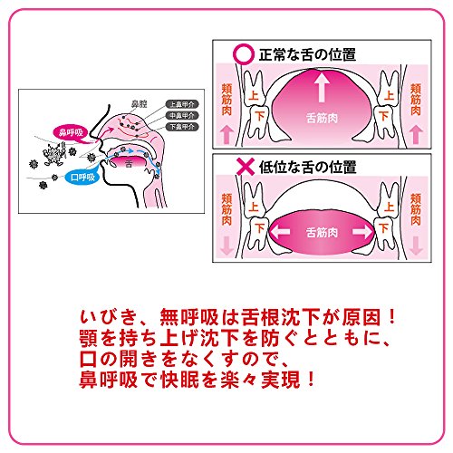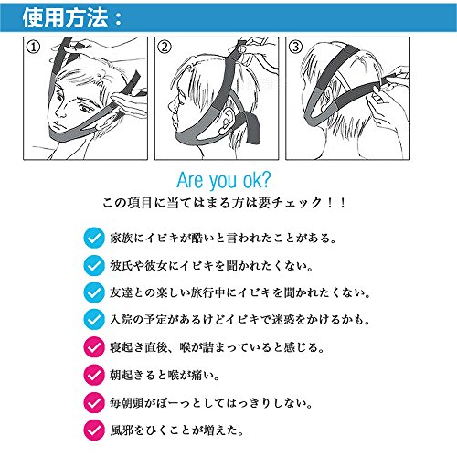 Friendly materials in your face which is rich in elasticity breathable adopted, and lift the muscles of the jaw and face us. And then fixed with Velcro at the two locations of the parietal-occipital region. Adjustment and installation of the way to the AER tighten acceleration in your face, wearing disconnect is easy. Snoring, apnea is due to the base of the tongue subsidence, lift the chin, with prevent subsidence, since eliminating the opening of the mouth, effortlessly realized by supporters sleep in the nose breathing! It is unisex. Snoring prevention is, of course, the one without the knowledge of sleep, small face effect at the same time realize towards the aesthetic high woman! ! ! The effect of anti-aging due to snoring alleviation, temporomandibular joint disease dislocation measures? Mouth breathing also be realized! ! !