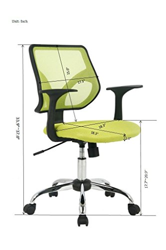 -. Feature : Ergonomic comfortable mesh back home & office chair, designed to provide exceptional back support and to prevent body heat and moisture build up / Adjustable tilt tension and seat height, chrome gas lift / High quality armrest, chrome base, and high quality Nylon casters / Mesh upholstered seat to eliminate leg fatigue / Easy assembly upon arrival. Note:the color is way more green and brighter than pictured on the website