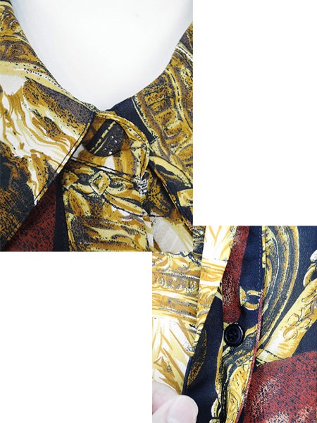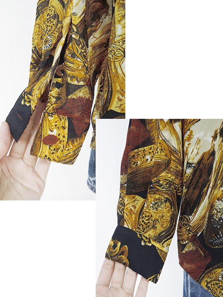 Ladies ブランド- カラー黒・ゴールド メール便不可 コンディション★★★ 素材ポリエステル 表記サイズL スタッフコメントボタン付け替えリペアあり。 実寸サイズ 着丈 78 cm 身幅 57 cm 肩幅 50 cm 袖丈 57 cm ※ウエスト・ヒップ以外は平置き採寸