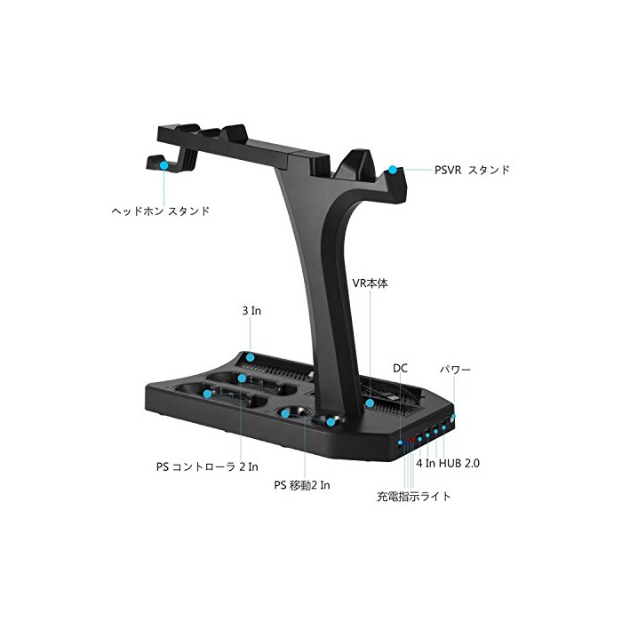 【다기능 충전 스탠드】이것은 PSVR/ PS4/PS4프로/PS4슬림하게 대응 할 수 있는 만능의 스탠드입니다.PlayStation Move 콘트롤러도 2대 동시 충전 가능합니다.USB허브,게임용의 이어폰으로도 적용에 옵니다.