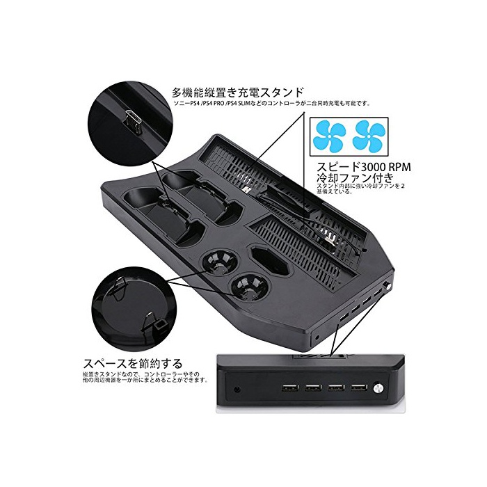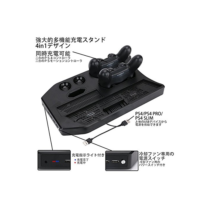 원본상품명: PSVRスタンド Deyard PS4/PS4 PRO/PS4 SLIM置きスタンド コントロラ2台充電USBハブ4ポト 冷却ファン付き 日本語明書付[初期VR]