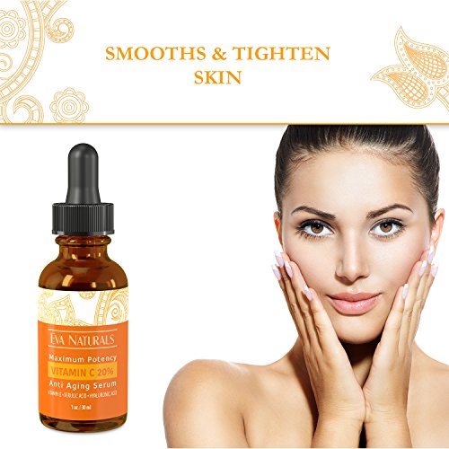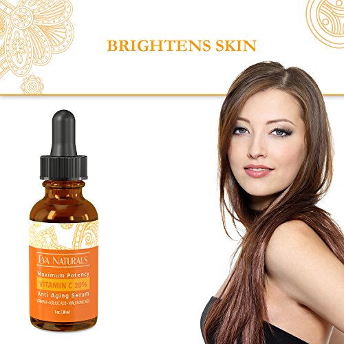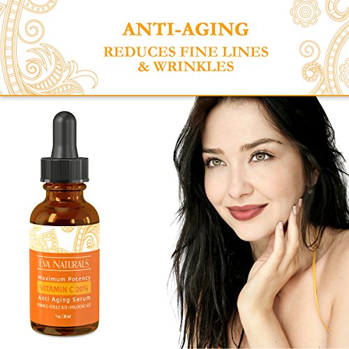 - Title : Eva Naturals Vitamin C Serum 20% for Face, Anti-Aging Formulation with Ferulic & Hyaluronic Acid, Vitamin E (1 oz)