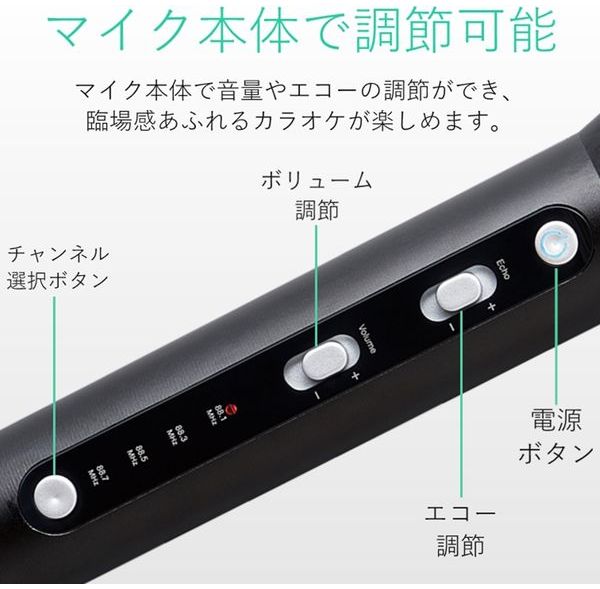 ●スマホだけでカラオケが楽しめる! FMトランスミッター機能搭載で、車の中でもみんなで歌えるスマートフォン用カラオケマイク。