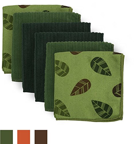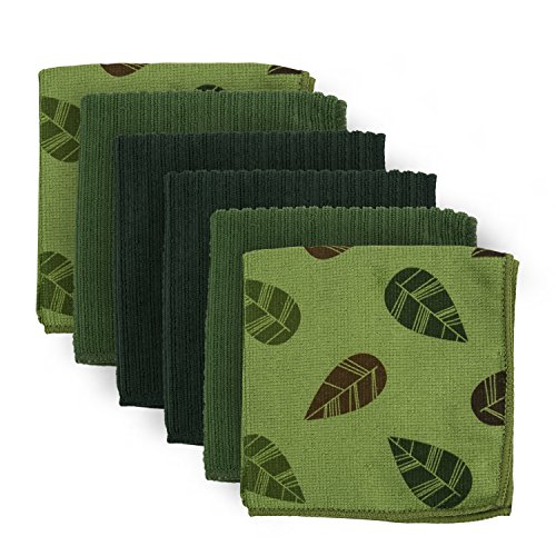 DII Microfiber Cleaning Towels Perfect for Kitchens, Dishes, Car, Dusting, Drying Rags, 12 x 12, Set of 4 - Green Leaves