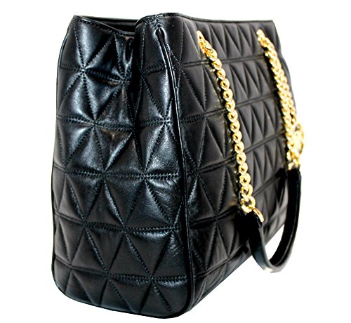 Product Description Beautiful soft leather. New style 2017/2018 Measurements : 13.5"X9.5"X5" Gold tone hardware, snap closure. Chain-Link Double Shoulder Strap with 9" Drop . 2 compartments with middle zip closure pocket. Interior: 4 slip pockets .1 zip wall pocket..Bottom feet. AUTHENTIC 0