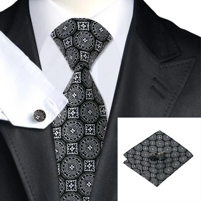 | [해외]SN-1574 새로운 도착 블랙 참신 남성 넥타이 2016 넥타이 브랜드 넥타이 손수건 커프스 세트 남성 비즈니스 웨딩 파티 |