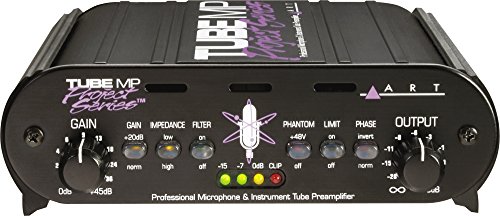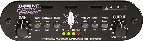 The Tube MP Project Series is a professional quality audio interface that lets you connect microphone, instrument, and line level signals to a mixer or other audio input. This hybrid design is the latest in a long line of ART tube preamps. From the new all-aluminum stackable chassis to the precision LED level metering circuitry, ART improved virtually every aspect of their already successful Tube MP series. With up to 70dB of clean musical gain and high output signal drive capability the cold digital world will melt with your mixes! Charge up your creativity with the Tube MP Project Series! Features: ? Extremely Low Noise Discrete Front End ? Up to 70dB of Clean, ?Musical? Gain ? High Output Signal Drive Capability ? Fast FET Limiter to Prevent Overload ? Switch Selectable Input Impedance ? Precision LED Metering ? Built-in Low Noise Phantom Power Supply ? Compact, Stackable all Aluminum Chassis ? XLR and 1/4? Inputs and Outputs ? Phase Invert Switch ? High Cut Filter Switch ? Variable Input and Output Controls Specifications: ? Frequency Response: 10Hz ? 40KHz, +/-1 dB (typical) ? Dynamic Range: >100dB (20Hz to 20KHz) ? THD: <0.05% (typical) ? CMRR: >60dB (typical) ? EIN: <-130dB (XLR to XLR A-weighted) ? Maximum Input Level: +17dBu (1/4?), +16dBu (XLR) ? Maximum Output Level: +20dBu (1/4?), +26dBu (XLR) ? Input Connections: 1/4? TRS unbalanced (1meg Ohm) ? XLR female balanced ? Output Connection: 1/4? TRS unbalanced (600 Ohm) ? XLR male balan...Feature