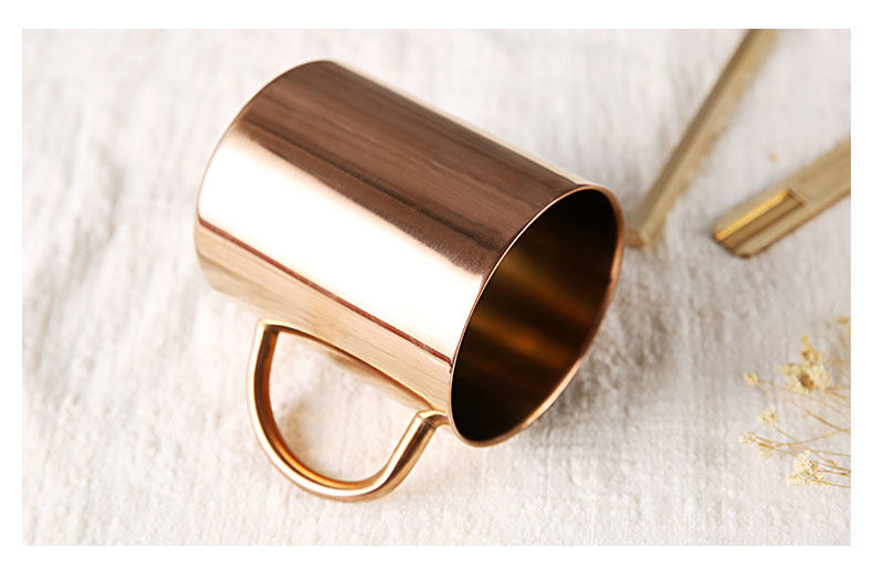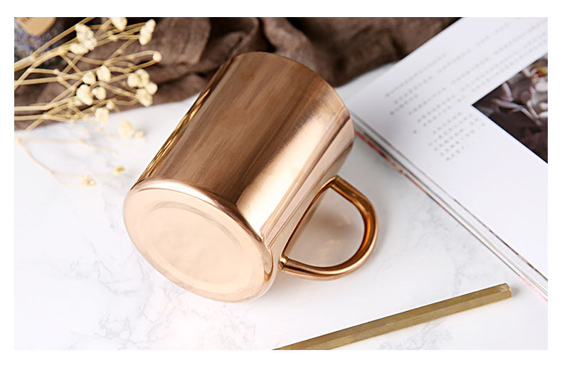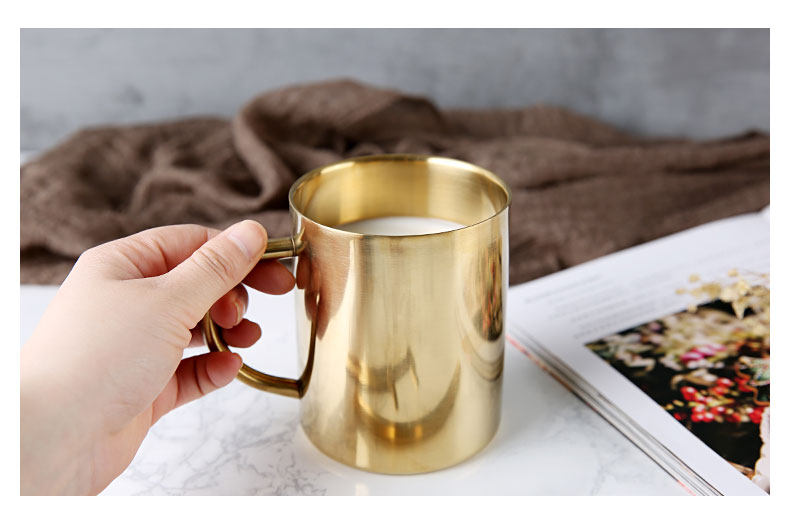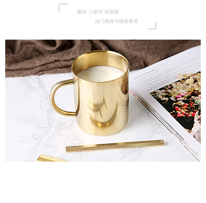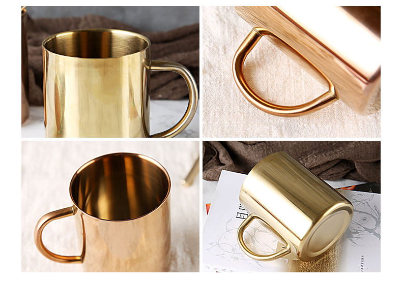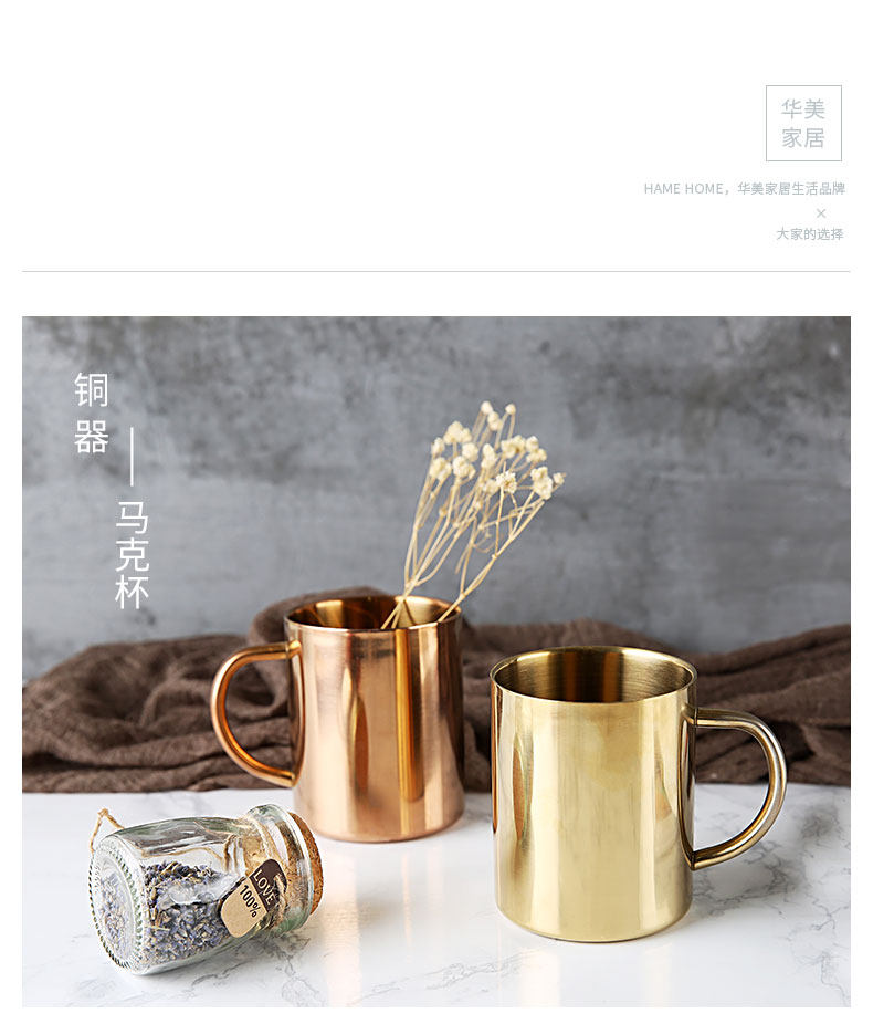 304不锈钢马克杯咖啡杯随手杯 镀铜杯子 双层防烫设计杯带把