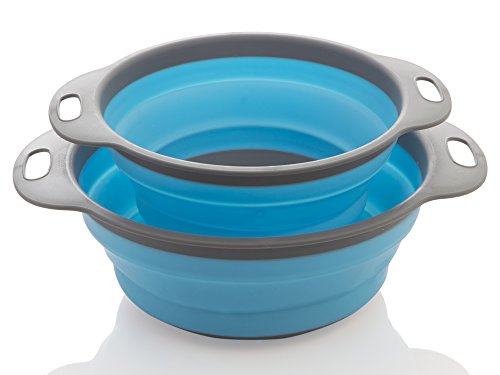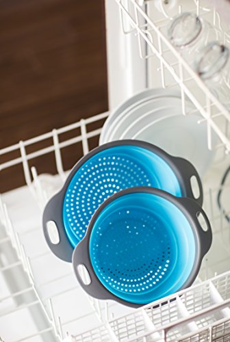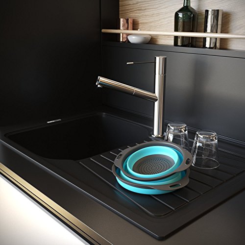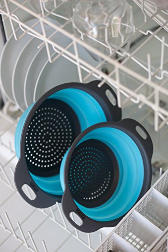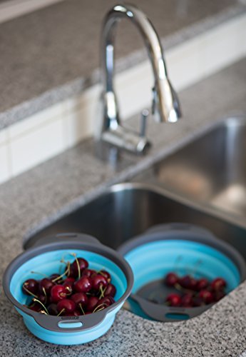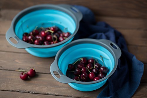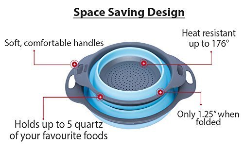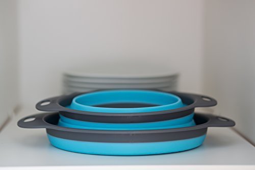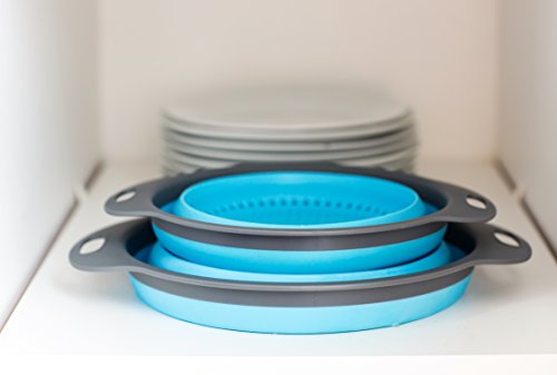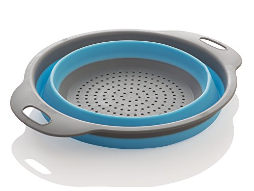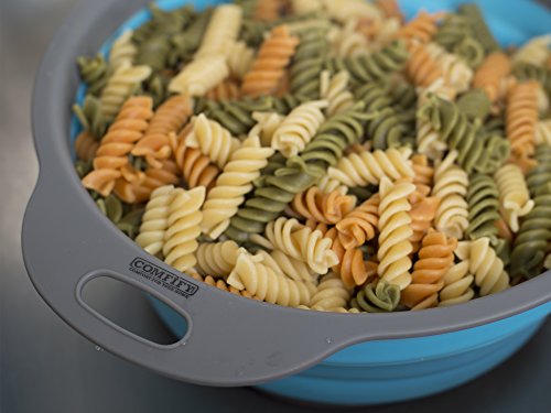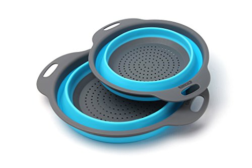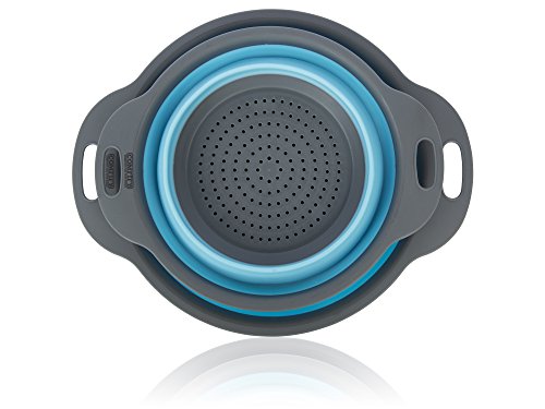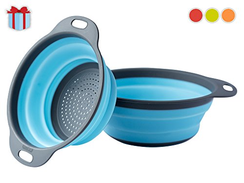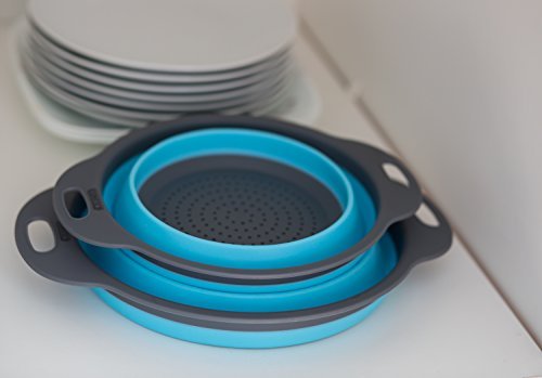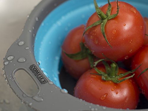 SET OF 2 COLLAPSIBLE COLANDERS FOR YOUR KITCHEN The package includes two strainers / colanders: 8 and 9.5 inches in diameters, Two sizes means not having to wash your only strainer before you prepare a second part of your meal. The 8" and 9.5" inch strainers included in this set also mean that can fit different pot sizes. Use this folding colander with pasta, fruit, berries, vegetables or any other produce. This two-piece colander set is also a great value - TWO IS BETTER THAN ONE! The handles are comfortable, soft and will not slip. These food strainers are heat resistant up to 176ºF, so even hot boiling water will not cause any damage. Heat also will not transfer , as it would with metal, so your hands will be safer. And with with Amazon's world class 100% A-to-Z Guarantee and Hassle Free Life Time warranty from Comfify, your shopping experience is safe. COMPACT, ERGONOMIC DESIGN 2-Piece Strainer Set by Comfify will nicely compliment any kitchen. Whether your kitchen is big or small, this colander set will safe you some much needed space, while performing the tasks you need. When folded, these colanders are only 1.25" tall, making it very easy to store them in a kitchen drawer or a cupboard. GREAT STRAINERS AND COLANDERS FOR CAMPING, RV, COTTAGE OR BEACH HOUSE The compact size of this colander set makes it your perfect companion for a camping trip or keeping these handy in your RV or Camper. And how about having a set in your cabin or a beach house? The heat resistant, durable, lasting, FDA Food Grade Silicone strainers fold easily to save you much needed space in the kitchen. 0 |