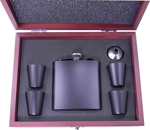 -. Title : Personalized Add Your Custom Text 6 oz Stainless Steel Black Matte Customizable Flask Gift Set with (4) Shot Glasses, Funnel, with Wooden Gift Box - Father's Day, Valentines Day, Birthday, Weddings