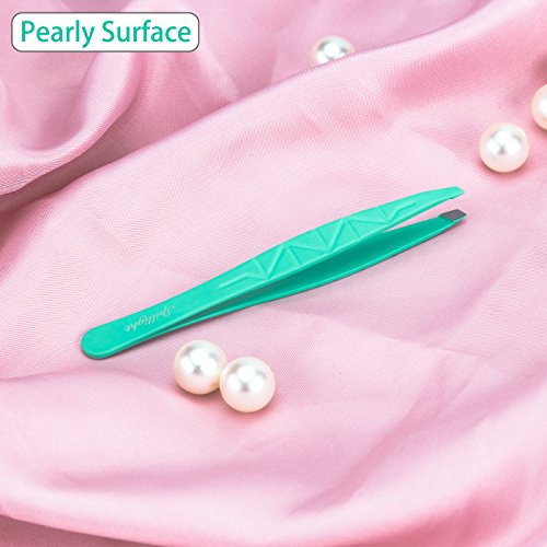 Spillight Eyebrow Tweezer, Pearly Smooth Slant Tip Tweezer for Precision Trimming, Beginner Tweezer for Splinter Ingrown Hair Removal, Skin-like Rubber...