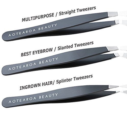 - SUPERIOR VALUE MULTIPACK BUNDLE Professional Eyebrow Tweezers: Slant, Straight and Pointed in our cute travel pack