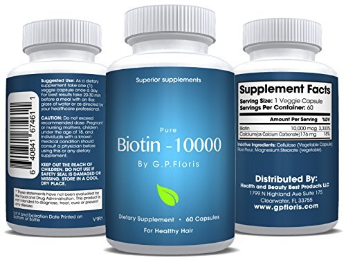 -. Feature : MAXIMUM STRENGTH, HIGH POTENCY BIOTIN SUPPLEMENT: If you have been looking for the most effective biotin supplement, your search has come to an end. This dietary supplement offers 10.000mcg per serving. Moreover, it is made in the USA and it GMP certified, assuring maximum quality and safety. / ACQUIRE STRONG NAILS AND SHINY HAIR: By promoting cellular production, this biotin dietary supplement will strengthen your hair giving it a healthy appearance and making it shiny and soft to the touch. In addition, it will promote strong, healthy nails. / BOOST YOUR ENERGY LEVELS AND CEASE THE DAY: This top quality biotin supplement will boost your energy levels, turbo charging your organism and having you feeling strong and ready to perform your best. / TAKE 2 CAPSULES A DAY AND ENJOY MAXIMUM BENEFITS: This biotin dietary supplement comes in the form of 60 easy to swallow capsules which translate into a 1 month supply. We recommend that you should take 2 veggie capsules along with an 8oz glass of water and 20 to 30 minutes before your meal once a day. / 100% SATISFACTION OR YOUR MONEY BACK: Meeting all your demands and serving all your needs is our P.R.Imary goal. This is why offer you a 60 days money back guarantee, assuring an entirely risk free purchase and promising to give you all your money back in case this biotin supplement does not live up to your expectations.