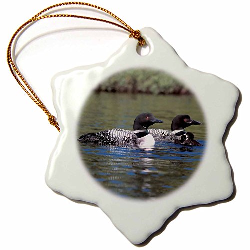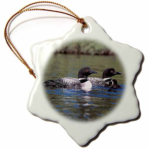 3dRose orn_3106_1 Family of Three Loons Porcelain Snowflake Ornament, 3-Inch