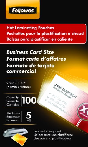 Fellowes Laminating Pouches, Thermal, Business Card Size, 5 Mil, 100 Pack (52031)