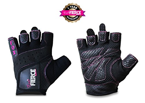 The BEST Women Weightlifting Gloves by Fox Fierce. We believe that women can still look and feel feminine whilst unleashing their fierce determination to get in shape. We believe in women rocking womanly figures. We believe in bringing sexy back. Our passion is to help our fellow female powerhouses to unleash their inner fox by making the selection of gym ready wear easy. *Our expertly crafted gloves look great, and are designed to keep your hands looking and feeling amazing. And like they belong to a lady! *They are super comfortable! The isolated padding and half finger design stops your hands looking and feeling like the hulks. *Never lose your grip again! With the bonus Figure 8's hit your max weight potential with confidence. *Lightweight, due to the lack of bulk. *The perforated leather prevents sweat build up. *Calluses be gone! Protect those hands! *Easy to get off. Just pull the finger tab and off you go. *Durable as well as comfortable. The combination of leather and synthetic materials ensures endurance. *Yes they're washable: cold wash only. *They're made from high quality materials and arrive in quality packaging. *Limited time only included with your purchase Figure 8 straps to help you maximize your workout. Straps help you lift more weight than you can with grip alone. More weight means more muscle! More Muscle means less fat and more tone. Valued at $16. The Fox Fierce Fitness Program and How to use your figure 8 straps valued at $49. Amazon Customers and Personal Trainers alike trust Fox Fierce to deliver products of quality and style. Risk Free Purchase- Not satisfied? We will refund, no questions asked. They are also covered by a 1-year guarantee. ADD TO CART NOW to start your body transformationFeature
